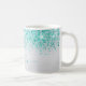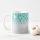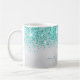 A faux silver looking background, decorated with teal, sea green faux glitter dust. Personalise and add your name written with a trendy hand lettered style script with swashes.