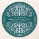 Silver Teal Royal Medieval Sword Wedding Round Paper Coaster