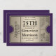 COLOR PALETTE: dark, eggplant purple and silver metallic look DESIGN COLLECTION: 75th birthday for your favourite grandfather, grandmother, mother, father, aunt or uncle on reaching this milestone age. This modern, Hollywood premier style, elegant movie ticket stub party invitation is perfect for your celebration of any kind. The typography style layout is especially easy to fill in the template with your personalised details. A grey, silvery metallic look has been graphically produced to add a touch of elegance and sophistication.