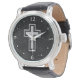 Stylish religious symbol, Christian cross in silver grey shades on a printed background of black glitter look pattern. Handsome for a man or Christening, Boy's Baptism or a great gift for Pastor or Youth Leader.