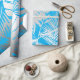 Silver tropical leaf jungle pattern on blue wrapping paper