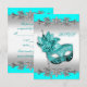 Silver Turquoise Blue Masquerade Party RSVP Card