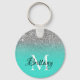 Silver Turquoise Glitter Ombre Monogram Key Ring