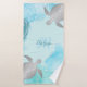 This coastal hand towel set for her features silver tribal turtles on a turquoise light blue marble ink background. Customise it with your name and monogram.