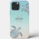 Silver Turtles Initials Your Name Turquoise Beige Case-Mate iPhone Case