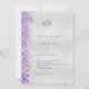 A trendy faux silver looking background. Decorated with purple and violet faux glitter, sparkles. Personalise and add your monogram initials, names, and details.
