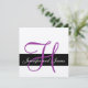 Silver Wedding Invitation with Purple Monogram design by Elke Clarke ©2009. Customise with your monogram names and wedding colours. Add all your wedding information on the back of the card using Zazzle's easy to use menu prompts. Shown here on metallic silver paper. Choose from many styles and colours of luxury paper to further enhance your wedding invitation design.