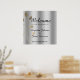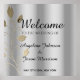 Simple, elegant, chic silver wedding Welcome poster with gold floral swirls and modern calligraphy script.