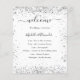 On the front: A modern, elegant wedding program, timeline. A white background decorated with faux silver confetti. Personalize and add your names and wedding details. Black colored letters. If you have more text it's possible to reduce the line space.