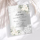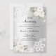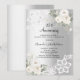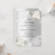 For an elegant and romantic 25th wedding anniversary. A faux silver looking background decorated with white florals, roses and white lace. Personalise and add your names and details.