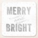 Silver & White Merry and Bright Winter Holiday Square Paper Coaster