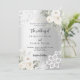 For an elegant and romantic wedding. A faux silver looking background decorated with white florals, roses and white lace. Personalise and add your names and details.