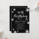 A sprinkling of snowflakes decorates this elegant silver birthday party invitation, on a classic black background. If additional coordinating items are needed for your event, just contact us at prettyfancyinvites@gmail.com with your request.