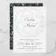 Silver foil winter berries wreath winter wedding invitation. Presented with an optional green winter berries pattern on the back. To change, go to customise further.