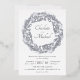 Silver foil winter berries wreath winter wedding invitation. Presented with an optional red winter berries pattern on the back. To change, go to customise further.