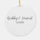Commemorate the day you accepted his marriage proposal with the elegant Silver Winter Snowflake Engagement Round Ornament. This festive custom we're engaged ornament features an intricate silver grey tone snowflake on a white background.