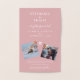 Real silver foil world map on the front of a folded save the date card for a wedding abroad, destination wedding, or travel theme reception, with 2 photos and travel details and website inside on a muted dusty rose pink editable colour background.