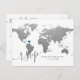 Silver grey World Map Travel Theme Destination Wedding POSTCARD rsvp WITHOUT ENVELOPES have a chic minimalist look featuring modern typography, a perfect enclosure card for a destination wedding or travel theme party invitation with a moveable and removable heart location. The back has space for optional meal selections and fun travel-theme response card wording. Great to match with a passport and boarding pass invitations for the wanderlust globetrotter couple or bar mitzvah celebration. Click customise to edit any part of the design to completely match your suite. View the matching collection on this page or use the designer store link to find matching products and other colours available.