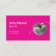 Vibrant bright pink rose colour background, calligraphy writing and silver yarn's pattern; a minimalist and simple design for unique and cute professional business card. Creative for your personal branding as artisan or artist.