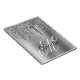 Silvery grey ombre faux brushed metallic foil texture with matching color sparkly faux glitter drips paired with a fancy script white and dark grey monogram.