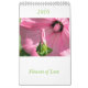Nice calendar with flowers - simbols of love. Iris Bell phlox hollyhock lily poppy dahlia