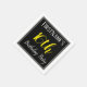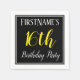 This simple and elegant paper napkin design features a message like "FirstName’s 16th Birthday Party", with the "16th" in fancy yellow-coloured text, within a black-coloured square area featuring a simple border outline. A personalised name can be used. Napkins like these could perhaps be used at a birthday party for somebody who is celebrating their sixteenth birthday. [~Z0000150]