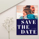 Simple 1 Photo Bold Navy Blue and White Wedding Save The Date