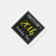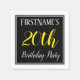 This simple and elegant paper napkin design features a message like "FirstName’s 20th Birthday Party", with the "20th" in fancy yellow-coloured text, within a black-coloured square area featuring a simple border outline. The name can be personalised. Napkins like these could perhaps be used at a birthday party for somebody who is celebrating their twentieth birthday. [~Z0000150]