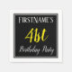 This simple and elegant paper napkin design features a message like "FirstName’s 41st Birthday Party", with the "41st" in fancy yellow-coloured text, within a black-coloured square area featuring a simple border outline. The name can be personalised. Napkins like these could perhaps be used at a birthday party for somebody who is celebrating their forty first birthday. [~Z0000150]