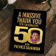 Fiftieth birthday photo elegant and simple gold on black thank you card . Great idea for adding some stylish simple thanks to your 50th birthday party favor bags. Personalize with your own photo in the 0 of 50. Can be personalized with your own name and wording, currently reads A massive thank you for celebrating 50 years with Patrice Savannah. Other matching items are available and can be created by request. Unique gold 50 graphic by www.mylittleeden.com