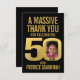 Simple 50th birthday photo black and gold thank you card