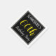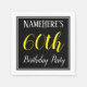This simple and elegant paper napkin design features a message like "NameHere’s 60th Birthday Party", with the "60th" in fancy yellow-coloured text, within a black-coloured square area featuring a simple border outline. A personalised name can be used. Napkins like these could perhaps be used at a birthday party for somebody who is celebrating their sixtieth birthday. [~Z0000150]