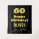 Simple 60th Happy Birthday Party Mountain Backdrop. A simple and modern design with bold and vivid yellow fonts on a black background and an abstract mountain shape on the bottom. Use this tapestry as a backdrop for the 60th birthday party for a person who loves mountain hiking. Personalise it with your name and age.