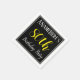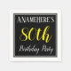 This simple and elegant paper napkin design features a message like "ANameHere’s 80th Birthday Party", with the "80th" in fancy yellow-coloured text, within a black-coloured square area featuring a simple border outline. The name can be customised. Napkins like these could perhaps be used at a birthday party for somebody who is celebrating their eightieth birthday. [~Z0000150]