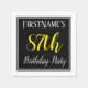 This simple and elegant paper napkin design features a message like "FirstName’s 87th Birthday Party", with the "87th" in fancy yellow-coloured text, within a black-coloured square area featuring a simple border outline. The name can be customised. Napkins like these could perhaps be used at a birthday party for somebody who is celebrating their eighty seventh birthday. [~Z0000150]