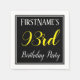 This simple and elegant paper napkin design features a message like "FirstName’s 93rd Birthday Party", with the "93rd" in fancy yellow-coloured text, within a black-coloured square area featuring a simple border outline. A custom name can be used. Napkins like these could perhaps be used at a birthday party for somebody who is celebrating their ninety third birthday. [~Z0000150]