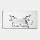 A simple and calm desk mat with a black rose drawing, a white background and a black back, with no other additions, and a motivational sentence for work.
