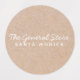A simple circular sticker featuring a kraft texture. Easily add your store's name and address. Easily label your retail products and packaging. Or change to an iron on material for direct labelling to clothing.