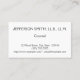 This conservative, simple, and understated business card design could be used by a professional such as a counsel, barrister at law, patent agent, or counsellor at law. The name, profession and contact details can be personalised.