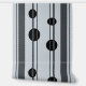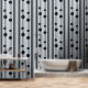 Black dots and dark grey vertical lines on light grey background in a simple and elegant pattern design