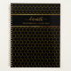 Abstract pattern with honeycomb hexagons. Name and text to personalise. Main colours of this elegant design : black and yellow.