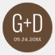 Simple and elegant initials brown wedding classic round sticker