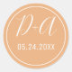 Simple and elegant initials peach coral wedding classic round sticker