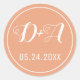 Simple and elegant initials peach wedding classic round sticker