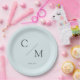 Customer-specific, modern, simple, elegant wedding Paper plate in lightblue, grey.