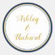 Simple and elegant names navy blue wedding classic round sticker