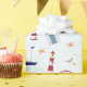 This simple nautical theme is fun and is reminiscent of the beach on any coast and the fun we had as kids playing there. Lighthouse, sailboats, starfish, anchors, beach houses and seagulls are a common sight and remind us why we like the ocean even if we cant be there all the time. Wrap your next gift in this special wrapping paper that is fun, unique and one of a kind.