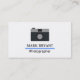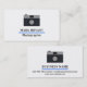 A business card with white background and a classic camera icon as design. Black text for personalisation of details. A simple, professional and modern business card for photographers or businesses dealing with camera equipment.