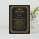 These wedding programs feature a black and gold colour palette, a geometric frame, and other stylistic details all inspired by Art Deco and the roaring twenties. You can customise the sample text fields to your liking.