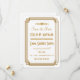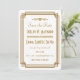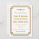 These save the dates feature a white and gold colour palette, a geometric frame, and other stylistic details all inspired by Art Deco and the roaring twenties. You can customise the sample text fields to your liking.